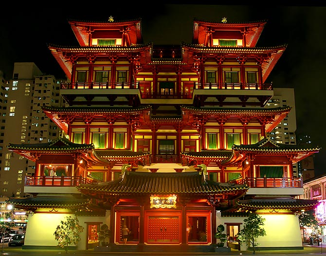 Setelah kagum dengan bangunan tersebut saya berjalan lagi dan tak jauh dari sana mataku juga menangkap sebuah bangunan mirip Wihara dan masih terkesan baru serta terawat. Cahaya lampu yang terang dari klenteng terlihat indah menyinari bangunan tersebut ditambah semakin larutnya malam itu. Ternyata Wihara ini bernama Buddha Tooth Relic Temple, dibangun pada tahun 2005 dan selesai pada tahun 2007, Wihara ini didedikasikan untuk Sang Budha Maitreya yang artinya juga Budha Masa Depan. Bangunan ini dikonsep dan dirancang oleh pemimpin umat Budha setempat Yang Mulia Shi Fa Zhao, bangunan ini dirancang berdasarkan unsur - unsur sejarah Dinasti tang dan Mandala Buddhis yaitu representasi dari alam semesta Buddhis.
