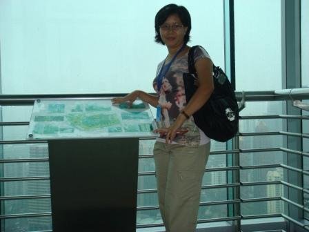 Kembali lagi saya ke rombongan tour, menyaksikan pemandangan dari lantai 42. Sebenarnya saya ada sedikit takut pada ketinggian hanya tidak berlebihan. Awalnya saya tak berani berjalan di jembatan nya. Saya hanya melongo pelan - pelan saja, setelah kemudian penyesuaian sambil melihat pemandangan indah nun jauh dimata tak terasa saya sudah membawa diri ke tengah jembatan dan berani melihat ke bawah walaupun masih ada sedikit perasaan menggelitik takut ketinggian. Setelah terbiasa akhirnya saya sempatkan diri bernarsis ria foto pemandangan dari segala penjuru....