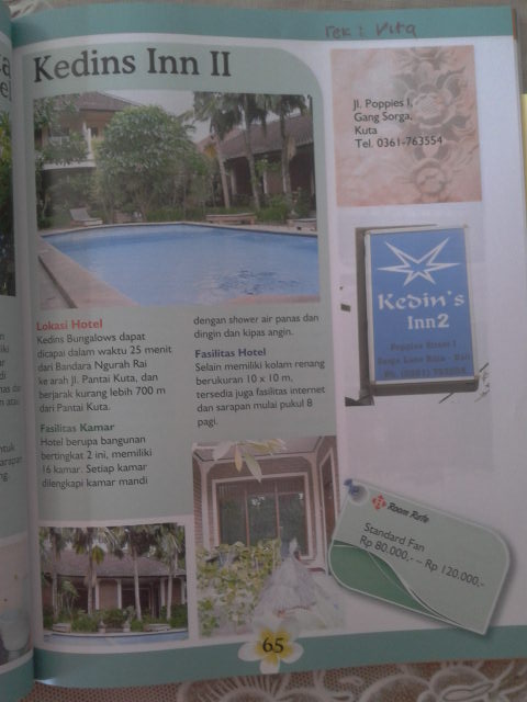 Target pertama wilayah Kuta, kami telusuri sepanjang jalan legian. Sasaran kami "Sandat Bali Inn"