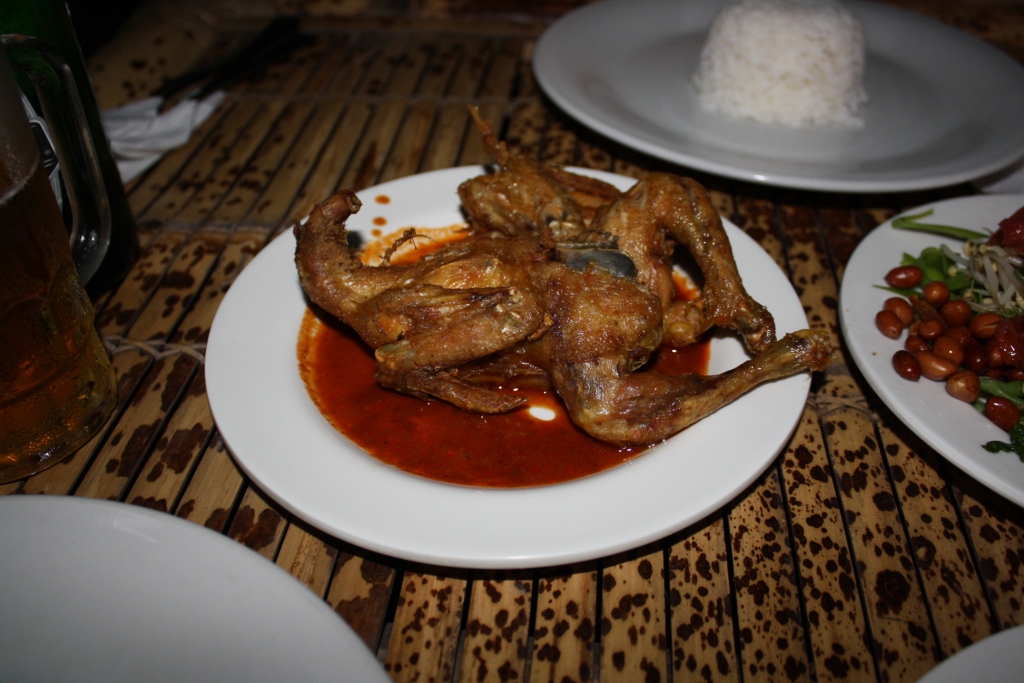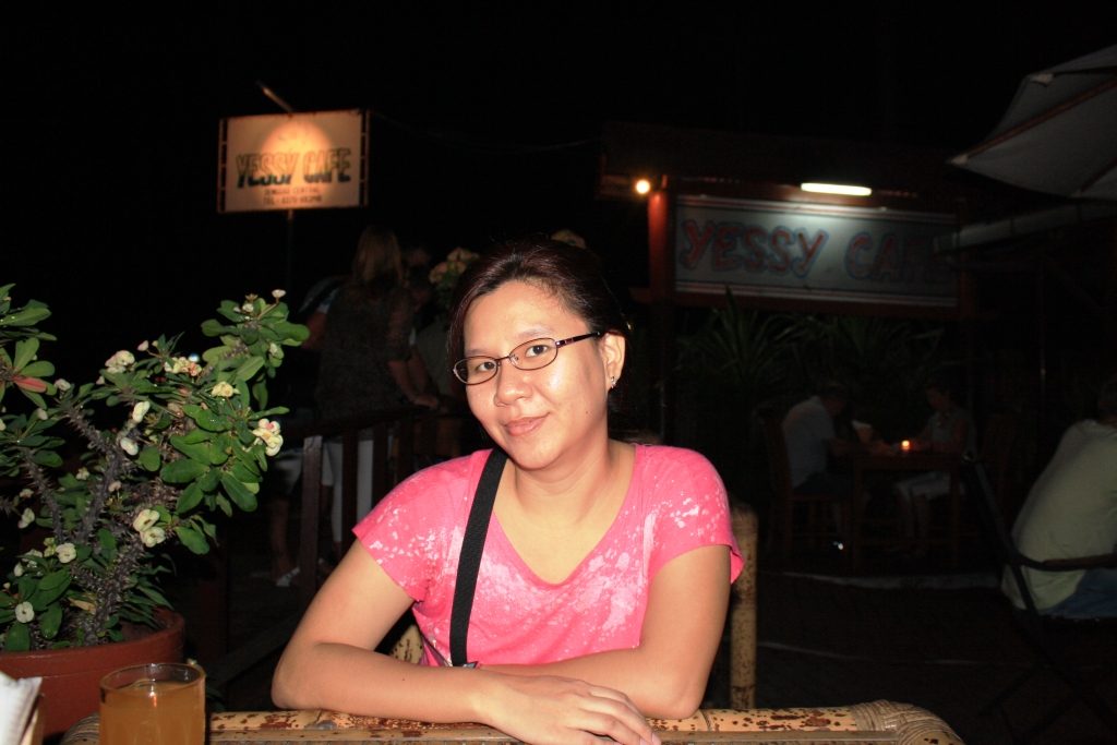 Sampai juga akhirnya kami di Cafe Yessy, untung belum jam 7 malam. Kami duduk di luar dan kebetulan restoran ini bangunannya konsep Indonesia, terlihat dari interior nya yang banyak menggunakan bambu, restorannya model setengah terbuka setengah berada di ruangan. Kami memilih di alam terbuka saja, biarkan langit yang menjadi atap kami untuk makan malam ini. Menunya Indonesia banget...yaitu khas Lombok, Ayam bakar Taliwang dan Kangkung pelecing. Untuk perkenalan lidah, kami coba pesan 2 menu dulu apalagi pas tau menu Ayam nya harus 1 ekor. Jadi bayangannya tuh pasti kekenyangan nich, Eh...tak taunya ternyata yang datang ukuran nya ayam kampung yang masih muda....jadi untunglah tu ayam pas di perut untuk berbagi bersama. Soal rasa di cafe ini masih masuk kategori boleh juga untuk dicoba, lumayan enak dan masih sesuai lidah Indonesianya.
