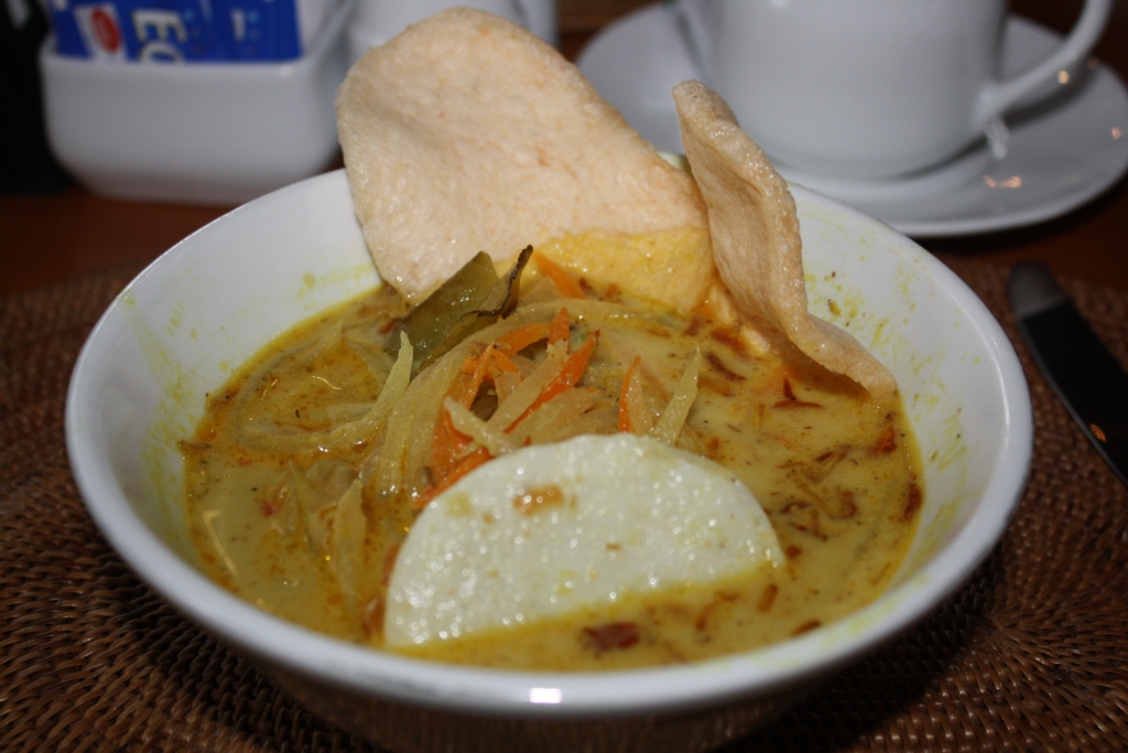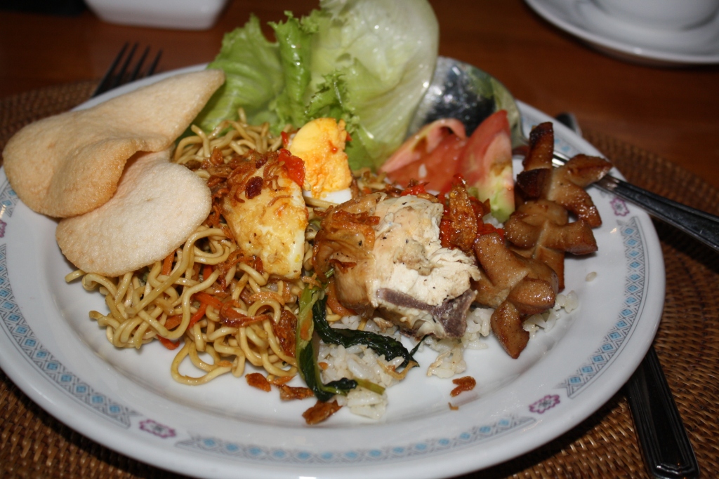 Makanan yang disajikan untuk sarapan cukup banyak....dari menu lokal seperti lontong sayur sampai international roti & keju. Berhubung kita orang lokal....hahaha...ketahuan deh kartunya....teknik makan sepuasnya dimulai, inilah tingkah laku rombongan pecinta makan. Tidak pakai malu atau malu maluin apalagi malu kucing, semua turis melirik kami yang makan nya tak berhenti - henti....habis satu menu ganti lagi menu lainnya, yeah....this is it....we love eat :))