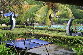 Berhubung semalam gelap maka pagi ini kami enjoying lingkungan hotel saja, walau masih hujan rintik rintik. Kami langsung menunju tempat breakfast dulu yang ternyata sudah penuh dengan tamu turis asing....wah yang lokal hanya rombongan saya dong. Cuek ahh....yang penting perut kami harus di isi dulu.