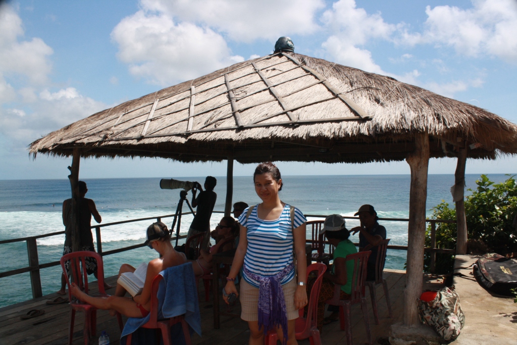 Lalu apakah tempat ini aman untuk berenang? saya sarankan tidak! Kecuali anda merasa diri anda perenang handal silakan...tapi keselamatan tanggung sendiri yach...jika mau berenang saran saya jangan terlalu jauh karena bisa anda dibawa oleh arus le laut lepas atau terseret oleh karang, apalagi disini tidak ada lifeguard yang ada hanya para surfer. Ini adalah lokasi ideal para surfer. Jangan kuatir.....petualangan tidak sampai disini, masih ada yang lebih memukau lagi.....asal siap berjuang saja memanjat karang ke atas dengan menaiki sebuah tangga kayu yang dibuat menggantung dan menempel pada sebuah tebing. Dari atas sinilah kita bisa menikmati seluruh pemandangan laut lepas dan juga aksi para surfer, tak lupa juga....para lelaki pasti betah lama disini karena banyak nya bule yang berjemuran. Tempat ini benar - benar "Worth It" make me breath-taking for a moment.