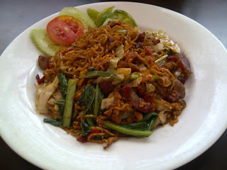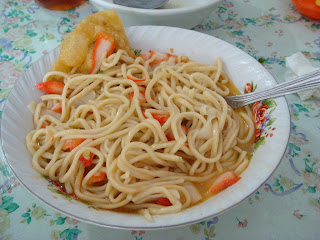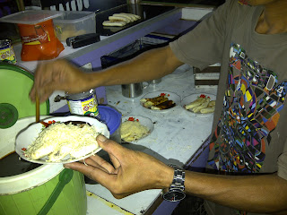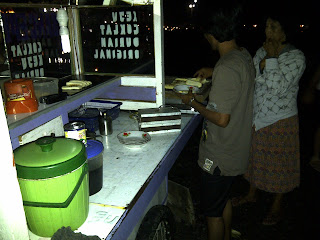 habis belanja di depan toko ini ada juga pedagang makanan gerobak. Pilihanya antara lain lumpia sayur, cendol, daging babi yg disiram saos kental (lupa oey namanya apa.....), Mie Bakso.