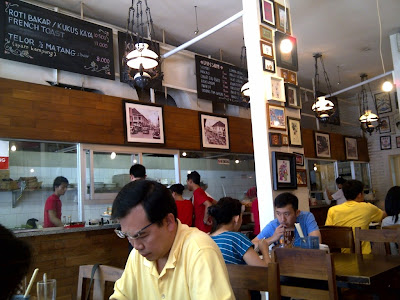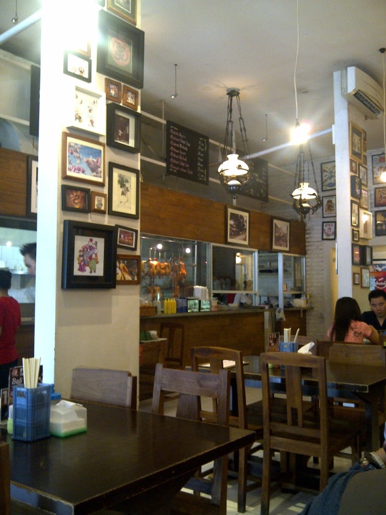 Oh yach...selain masakannya yang cucok dilidah, coba deh sekali kali mampir and lihat design interior di resto ini. Unik & khas banget, di resto ini banyak dipajang foto - foto jadoel & lukisan kartun, meja makan nya juga masih pakai kayu model jadoel, lampunya juga model gantung jadoel....pokoknya unik deh isi di restoran ini. Silakan dilihat saja suasana nya lewat fotoku....