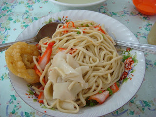 Mie Titi ini adalah sejenis mie kering yang disajikan dengan kuah kental