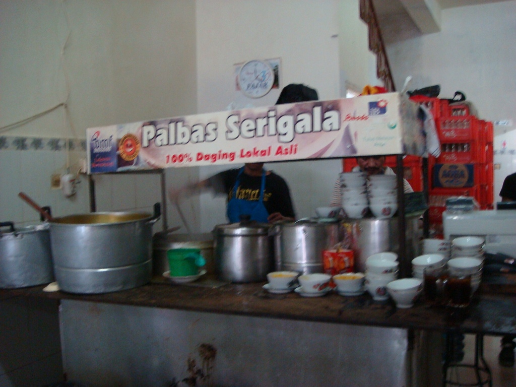 Nama warungnya adalah Pallu Basa Serigala, karena terletak tepat dijalan Serigala. ANYW, menurut info sebenarnya namanya sich Warung Pallu Basa H. Haeruddin, tapi lebih dikenal dengan Palbas Serigala.