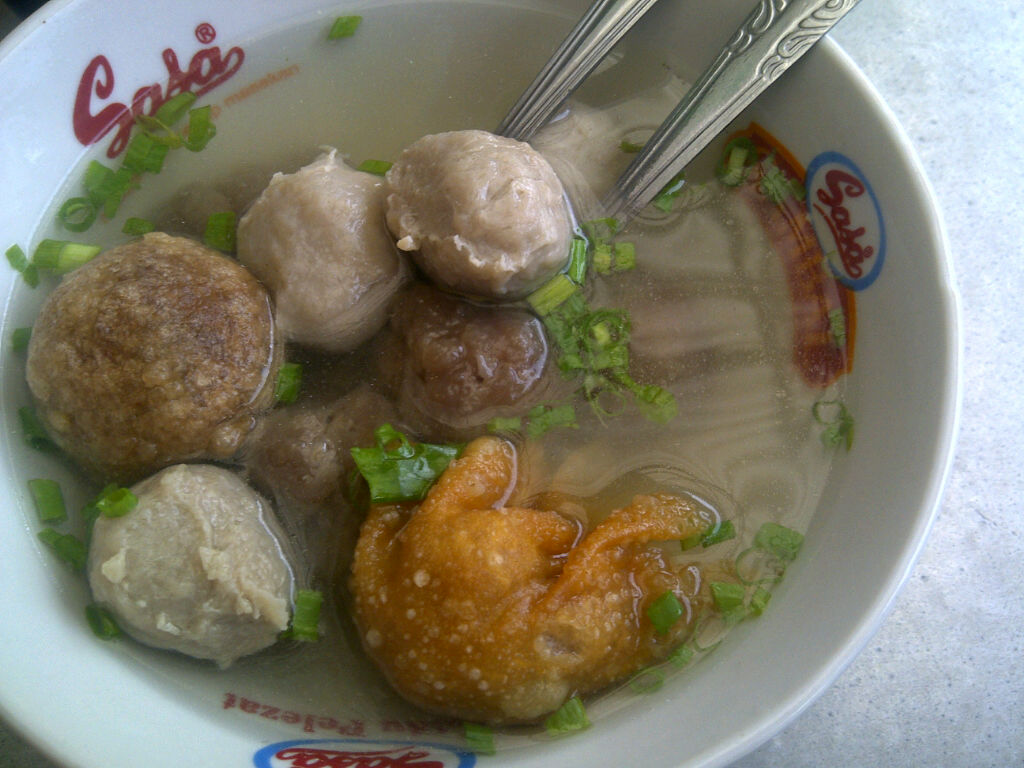 Keunikan & kinikmatannya yg membuat beda dari si bakso malang terletak pada kuah bakso yg masih mengunakan kaldu tulang sapi, lalu ditambahkan perasan jeruk nipis dan sambal kuning halus yg rada kental.....ehmmm mantaffff.....asli deh bakso malang jadi tersingkir dari kamusku.....aku cocok dengan bakso ini.....