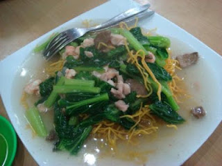 Hanya mie yam babi di sini tekstur mie nya tidak lah kecil dan halus, melainkan seperti mie karet dan makan nya kalo mau terasa harus disiram kuah banyak....jadi kaya macam makan mie ramen - itu menurut cara makan ku yach....krna aku coba makan kering macam makan mie ayam di Jakarta, tanpa siram kuah. Rasanya tidak keluar alias hambar, seakan - akan bumbu nya tidak menyatu di mie nya, begitu ku coba siram dengan 1 mangkok kuah tg telah disajikan lalu di aduk rata, baru deh keluar rasa nya.....nyam nyam...terasa sekali kaldu dari kuah nya yg menggunakan tulang ayam.