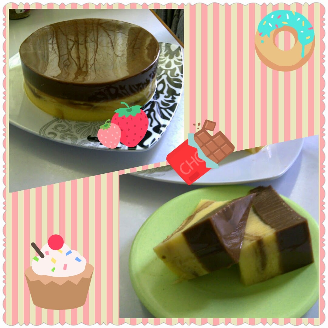 4. Tuang kedalm cetakan....tunggu sampai permukaan sedikit mengeras.....tata bizkuit marie diatasnya.